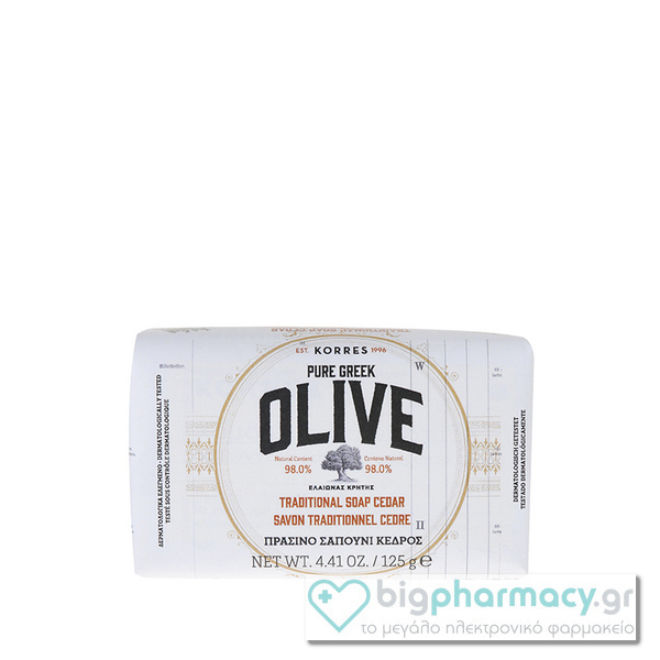 Korres Pure Greek Olive Traditional Soap Cedar Παραδοσιακό Πράσινο Σαπούνι με Άρωμα Κέδρου, 125gr