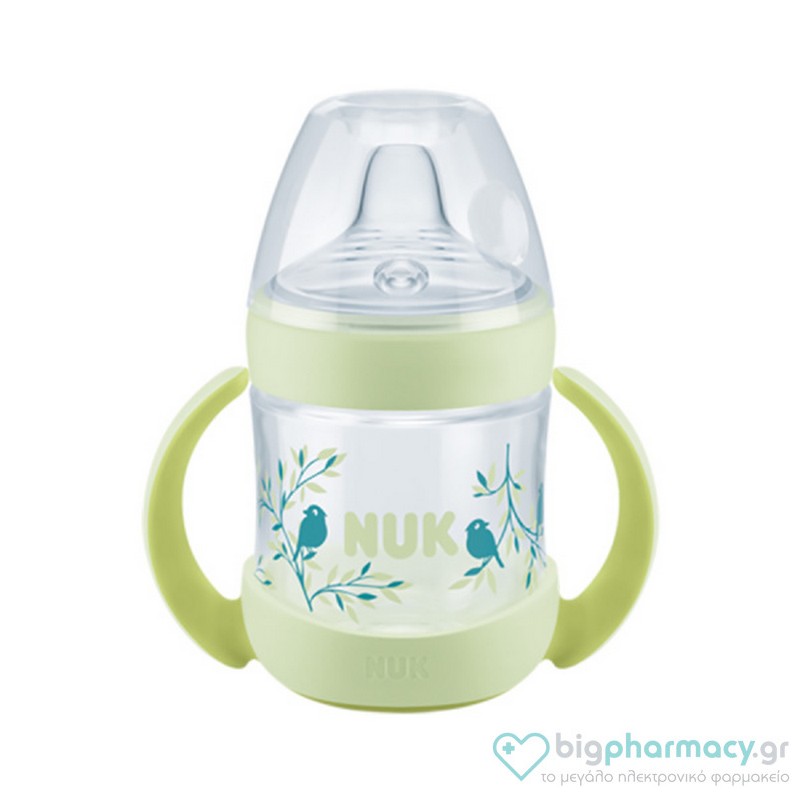 Το NUK Nature Sense Εκπαιδευτικό Μπιμπερό είναι ιδιαίτερα κατάλληλο για μωρά που θήλαζαν μέχρι προσφάτως και προσπαθούν να μεταβούν σταδιακά στην αυτόνομη χρήση ποτηριού χωρίς να χάσουν όμως το αίσθημα ασφάλειας που τους χαρίζει το στήθος της μαμάς. Το ιδιαίτερα πλατύ και απαλό ρύγχος από σιλικόνη (20% πλατύτερο από τα συνηθισμένα ρύγχη) χαρίζει στο μωρό σας μια φυσική αίσθηση πόσης. Επιπλέον η καινοτόμος βαλβίδα κατά των κολικών επιτρέπει στα μωρά να πίνουν χωρίς διακοπές, όπως από το μητρικό στήθος και συμβάλλει στην αποφυγή κατάποσης αέρα. Οι οπές, που προστατεύουν από τις διαρροές, προσφέρουν ασφάλεια κατά τη μεταφορά χωρίς τον κίνδυνο λεκέδων, έτσι ώστε το εκπαιδευτικό μπιμπερό να σας συνοδεύει πιστά ακόμα και μακριά από το σπίτι. Οι απαλές, εργονομικές λαβές, που καθιστούν ιδιαιτέρως εύκολο το κράτημα, καθώς και η αντιολισθητική βάση, που καθιστά ασφαλή την τοποθέτησή του, διευκολύνουν το μωρό σας κατά την εκμάθηση της αυτόνομης χρήσης του ποτηριού. Το NUK Nature Sense εκπαιδευτικό μπιμπερό σε απαλά χρώματα είναι κατασκευασμένο από πολυπροπυλένιο υψηλής ποιότητας, ανθεκτικό στις φθορές, ενώ συνδυάζεται εύκολα με τα προϊόντα της σειράς NUK Nature Sense.