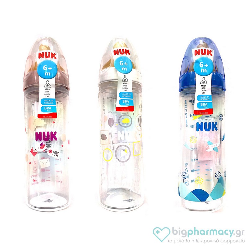 Nuk New Classic Μπιμπερό Πλαστικό PP με Θηλή Καουτσούκ 6-18 μηνών “M” 250ml