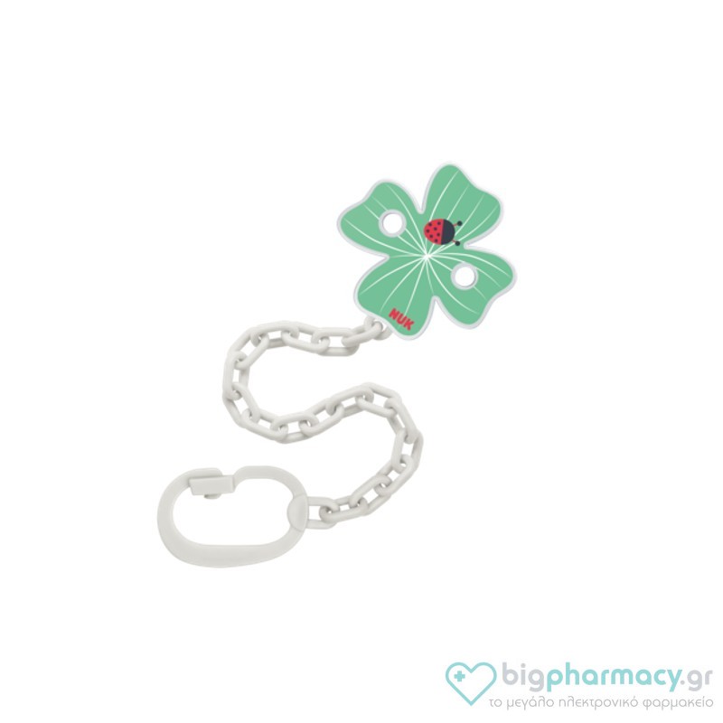 Οι αλυσίδες πιπίλας είναι πολύ πρακτικές επειδή εμποδίζουν την πτώση των πιπίλων στο πάτωμα ή την απώλεια. Η αλυσίδα πιπίλας συνδέεται με την πιπίλα χρησιμοποιώντας το άγκιστρο. Οι αλυσίδες πιπίλας NUK είναι κατασκευασμένες από υψηλής ποιότητας πλαστικό – σταθερό, άθραυστο και διατίθεται σε διάφορα σχέδια. Επιπλέον, είναι ένα ωραίο αξεσουάρ με τα όμορφα σχέδια τους.