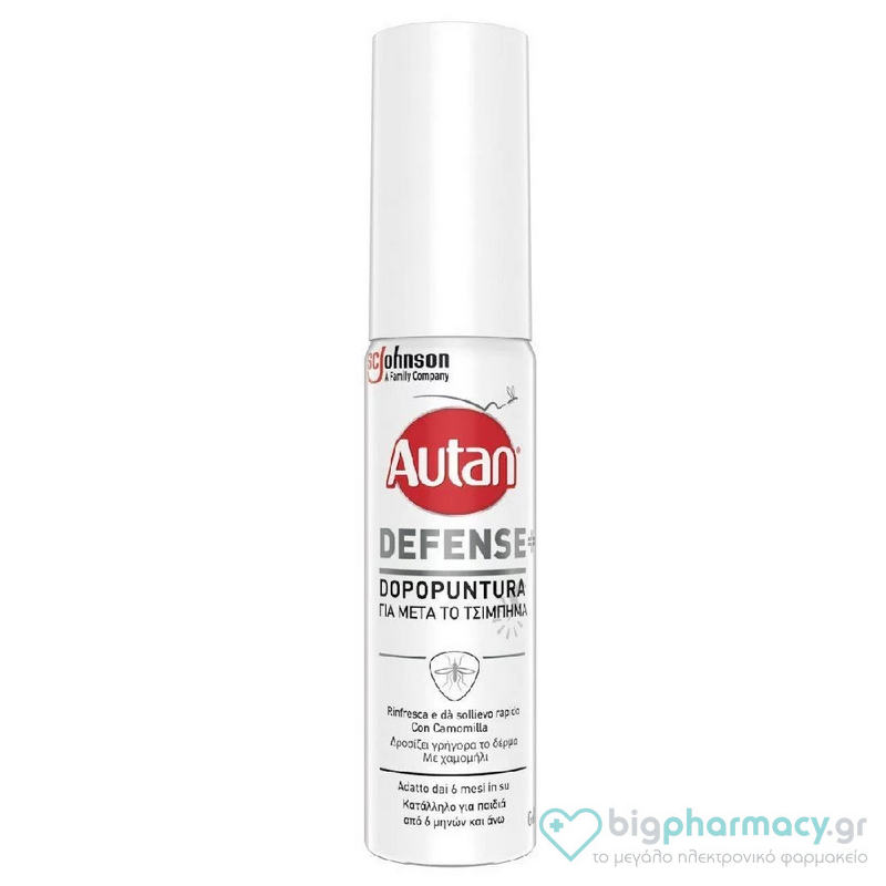 Το Autan Defense+ After Bite Gel για Μετά το Τσίμπημα είναι ένα καλλυντικό τζελ που περιέχει εκχύλισμα χαμομηλιού και χαρίζει άμεση αίσθηση δροσιάς & καταπράυνση στο δέρμα μετά από τσιμπήματα κουνουπιών και αλογόμυγων.