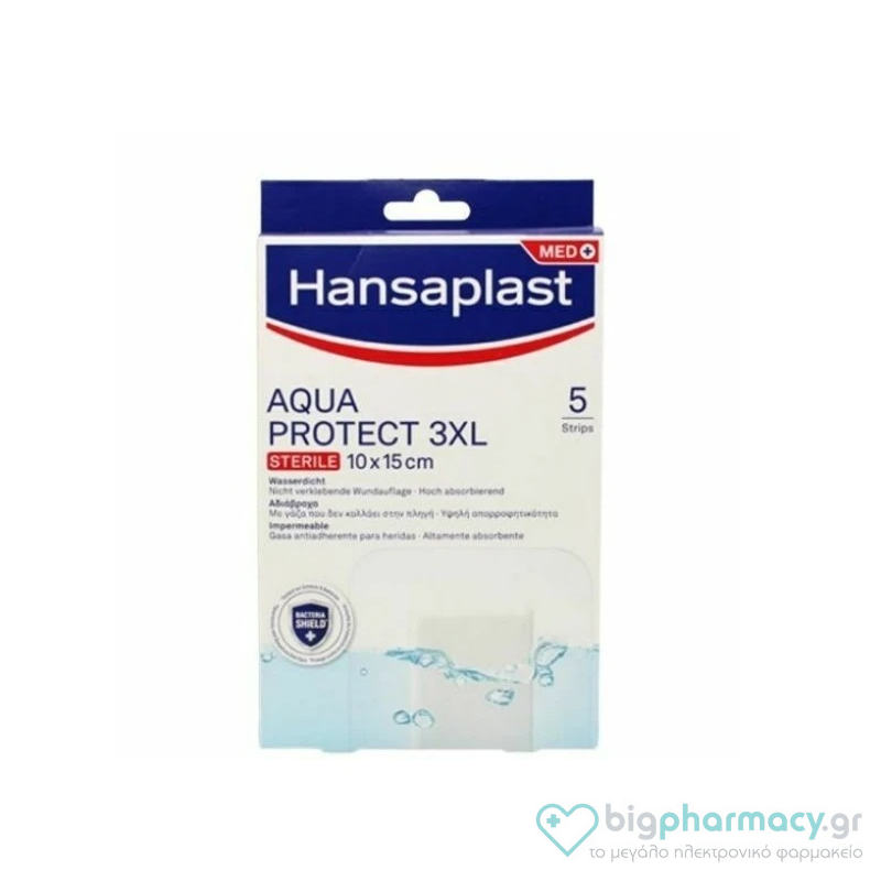 Τα Hansaplast Aqua Protect Sterile 3XL MED+ είναι αποστειρωμένα, αδιάβροχα επιθέματα, κατάλληλα για μεσαίες και μεγαλύτερες πληγές.