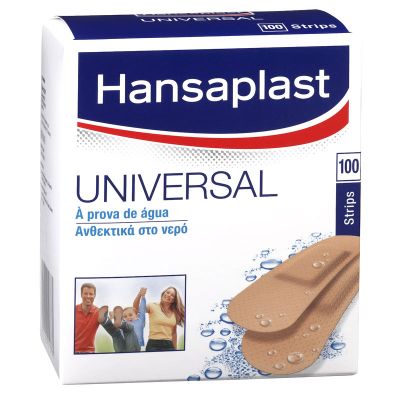 Hansaplast Universal Water Resistant Wide Strips Αντιστέκεται σε νερό και ακαθαρσίες Δυνατή επικόλληση Κατασκευασμένο από υλικό που επιτρέπει στην επιδερμίδα να αναπνέει Περιέχει 4 Διαφορετικά Μεγέθη Ιδανικά για να καλύπτουν όλων των ειδών τις πληγές. Είναι κατασκευασμένο από υλικό το οποίο αναπνέει και απωθεί το νερό.Η αντικολλητική γάζα προστατεύει την πληγή και δημιουργεί ένα προστατευτικό μαξιλάρι.Η ισχυρή κολλητική δράση εξασφαλίζει ότι το επίθεμα παραμένει στη θέση του.Βήμα 1 Καθαρίστε το τραύμα και σκουπίστε απαλά αφαιρώντας τυχόν ξένα σώματα όπως βρωμιά. Βήμα 2 Στεγνώστε το δέρμα γύρω από το κόψιμο ή την αμυχή πολύ προσεκτικά. Βήμα 3 Εφαρμόστε το επίθεμα χωρίς τέντωμα και αποφεύγοντας τη δημιουργία τσάκισης. ΣΥΣΚΕΥΑΣΙΑ : 100 Τεμάχια