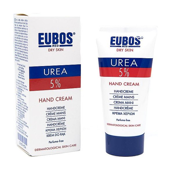EUBOS MED. Dermatological Skin Care.EUBOS UREA. Η σειρά UREA της EUBOS για το Ξηρό Δέρμα, αποτελεί μία ειδική περιποίηση για το ξηρό και το πολύ ξηρό δέρμα, που έχει αναπτυχθεί για την ενίσχυση της προστατευτικής λειτουργίας του. Ο καθαρισμός του ξηρού και πολύ ξηρού δέρματος απαιτεί μία εξαιρετικά ειδική φροντίδα, καθώς μία σημαντική ελάττωση των λιπιδίων μπορεί να είναι η αιτία του ξηρού δέρματος ή να καταλήξει στην επιδείνωση της κατάστασης του δέρματος, όπως π.χ. η ατοπική δερματίτιδα.Η σειρά UREA έχει ως κύριο ενεργό συστατικό την Ουρία, η οποία αποτελεί φυσικό συστατικό του φυσιολογικού ενυδατικού παράγοντα του δέρματος. Η ουρία δεσμεύει την υγρασία και αυξάνει σημαντικά την ενυδάτωση της κεράτινης στοιβάδας της επιδερμίδας. Ενεργεί επίσης ήπια κερατολυτικά, αντικαθιστώντας τις ανώτερες στοιβάδες του δέρματος. Ενισχύει το φράγμα του δέρματος και το δέρμα γίνεται απαλότερο. Σε συνδυασμό με το Γαλακτικό οξύ και τα άλατά του καθώς και με τη γλυκερόλη, εξασφαλίζει μία παρατεταμένης διάρκειας ενυδατική δράση, λειαίνει αισθητά το δέρμα και μειώνει σημαντικά τον κνησμό.Eubos Urea 5% Hand CreamΕντατική φροντίδα για το ξηρό και σκασμένο δέρμα των χεριών.Η ειδική σύνθεση σε ουρία προσφέρει παρατεταμένη ενυδάτωση, ενώ τα πολύτιμα συστατικά της αποκαθιστούν τα λιπίδια του δέρματος και καταπραΰνουν το ερεθισμένο και τεντωμένο δέρμα. Ο μοναδικός συνδυασμός βιταμίνης Ε, πανθενόλης, αλλαντοΐνης και της πολύτιμης βιταμίνης νιασίνης συμβάλλουν στην αναγέννηση και την ουσιαστική αναδόμηση του δέρματος. Αρκούν λίγες εφαρμογές, ώστε το ξηρό δέρμα να αποκτήσει απαλότητα, ελαστικότητα και τα χέρια νεανική εμφάνιση.