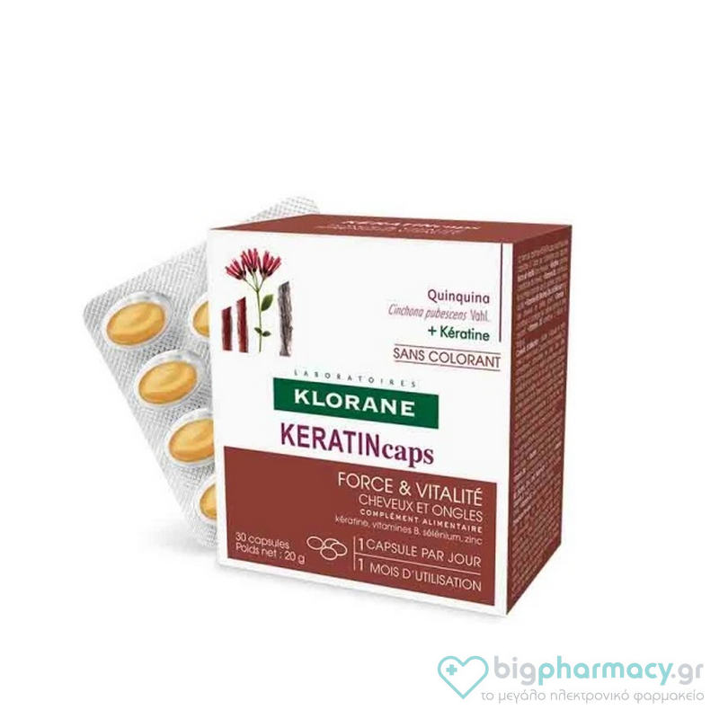 Klorane Quinine, Συμπλήρωμα Διατροφής για Μαλλιά-Νύχια με Κινίνη-Κερατίνη 30Caps