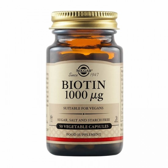 Η βιοτίνη βοηθάει στην ανάπτυξη των κυττάρων, στην παραγωγή των λιπαρών οξέων, στο μεταβολισμό των υδατανθράκων, των λιπών των πρωτεϊνών και στην αξιοποίηση του συμπλέγματος των βιταμινών Β. Επαρκείς ποσότητες χρειάζονται για υγιή μαλλιά και δέρμα. Χρήσιμη σε κάποιες περιπτώσεις σμηγματοροϊκής δερματίτιδας, απώλειας μαλλιών και συστηματικής καντιδίασης. Σε ταμπλέτες κατάλληλες για vegans ή φυτοκάψουλες. Λαμβάνετε 1 φυτοκάψουλα/ 1 ταμπλέτα ημερησίως, κατά προτίμηση με τα γεύματα.