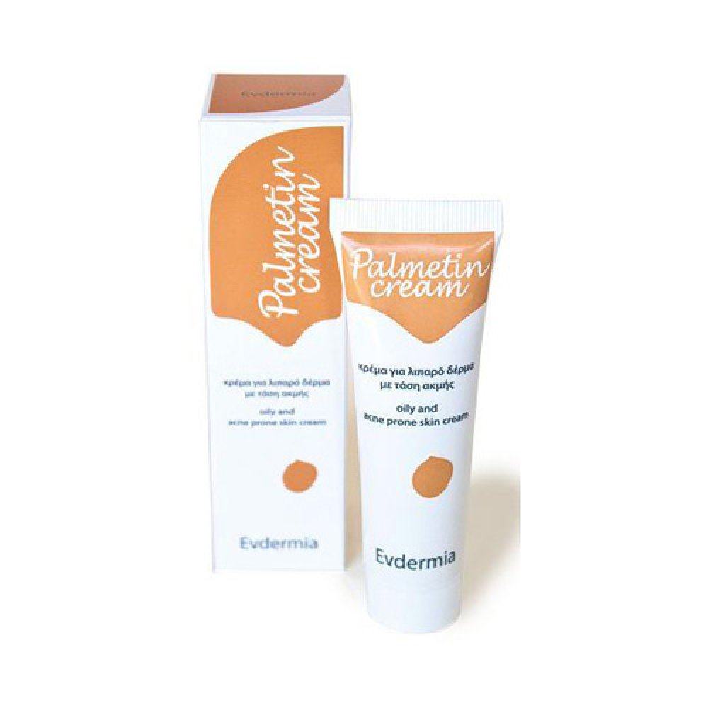 Evdermia Palmetin Cream 30ml Είναι ένα πρωτότυπο, φυσικό προϊόν, που αποτελεί σταθμό στην αντιμετώπιση της ακμής. Μειώνει την παράγωγη σμήγματος Καταπολεμά τη φλεγμονή και την ερυθρότητα Εμποδίζει την απόφραξη του τριχοσμηγματικού θύλακα Εμποδίζει την ανάπτυξη μικροβίων στο δέρμα Βοηθά στην επούλωση των σημαδιών, που προκαλούνται από την ακμή Έχει αντισηπτική και αντιοξειδωτική δράση Έχει μαλακτικές και ενυδατικές ιδιότητες